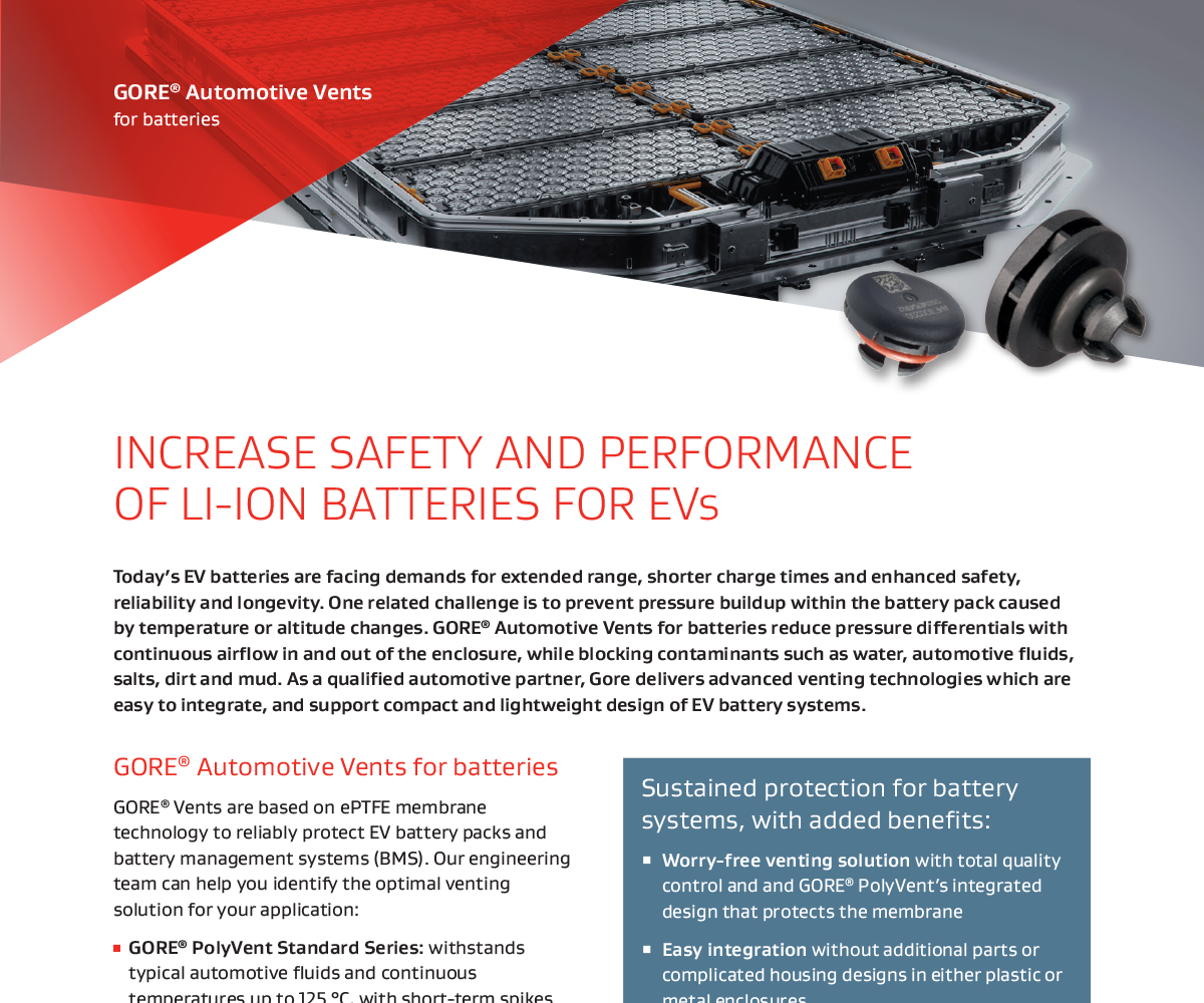Learn more about our portfolio of GORE® PolyVents for all your Li-Ion pack venting needs.