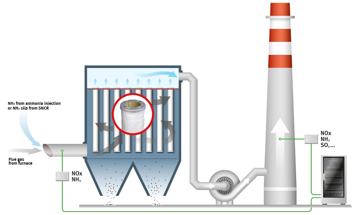 Questi prodotti consentono agli impianti di raggiungere livelli di NOx e NH3 simili a quelli di una torre SCR, ma con un costo di investimento molto inferiore. Essi infatti combinano una manica filtrante esterna per la rimozione del particolato con un inserto catalitico per la riduzione di NOx e NH3 . Inoltre, le operazioni di installazione e manutenzione sono minime — nella maggioranza dei casi è sufficiente sostituire le attuali maniche filtranti catalitiche GORE DeNOx Filter Bags.